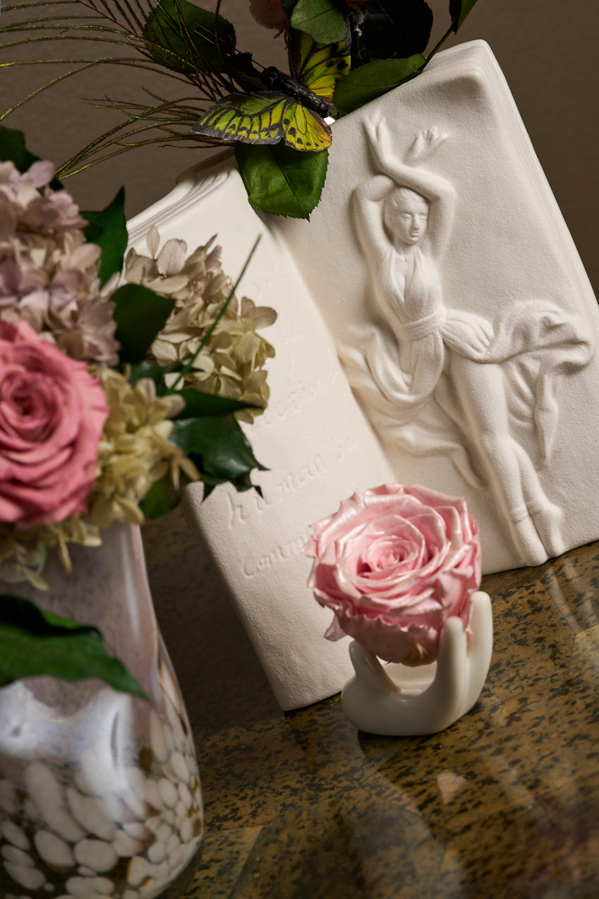 "House of Harstad isn’t just florals—it’s storytelling in bloom. As someone who typically leans into neutrals, I’ve found myself unexpectedly embracing color—drawn in by the layers, textures, and meaning woven into each preserved piece. I now own several of her works, including the Romeo & Juliet book arrangement, which sits on my library shelf like a story in itself—timeless, poetic, and quietly powerful. Some were bespoke, made for my vases. Others from her ready-made collections. All of them require no care—just presence."