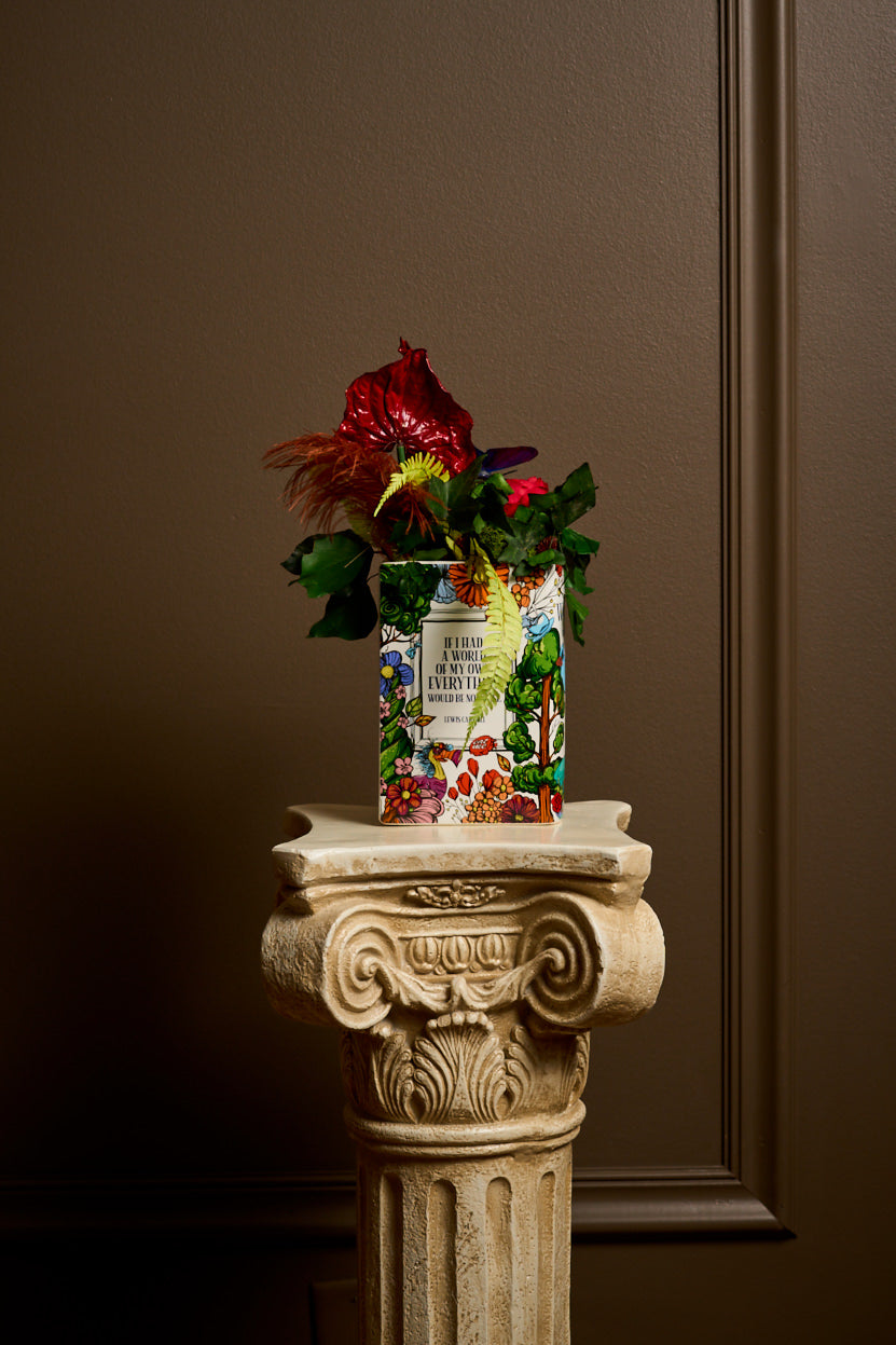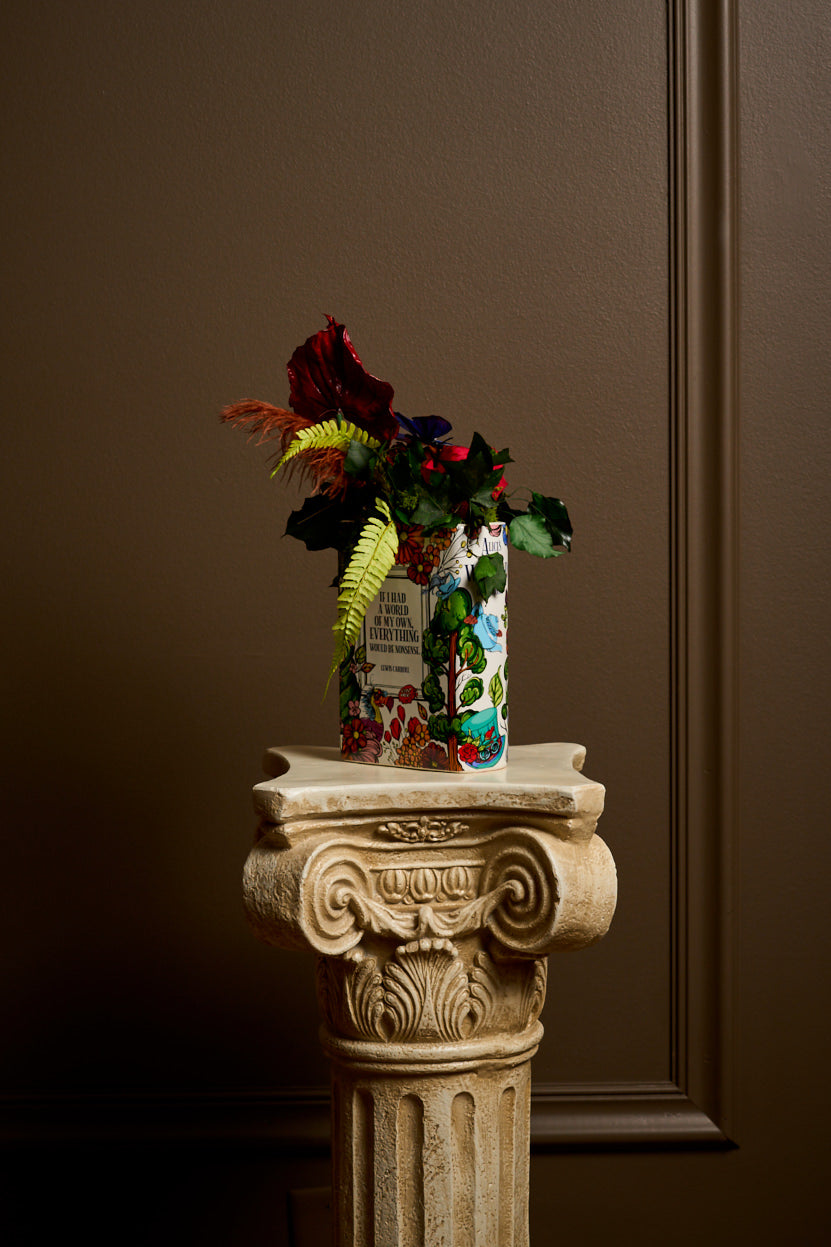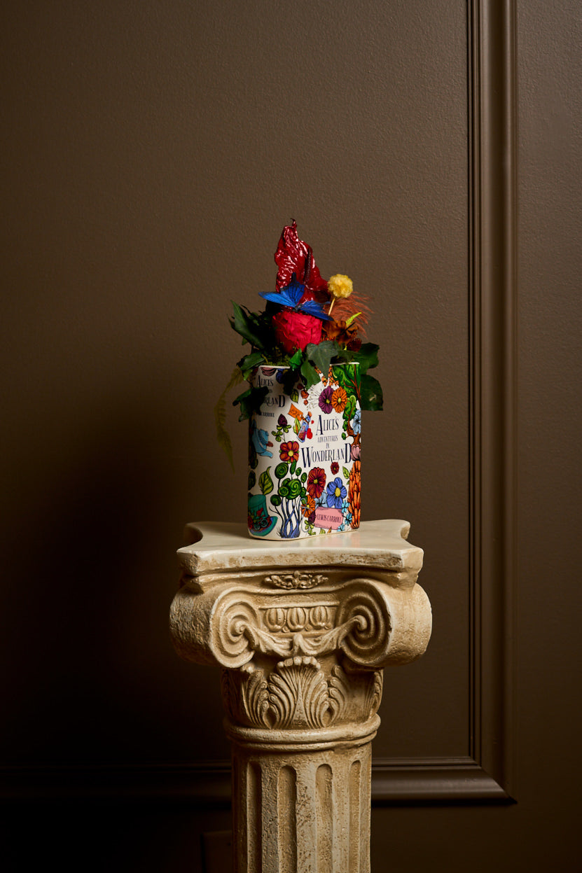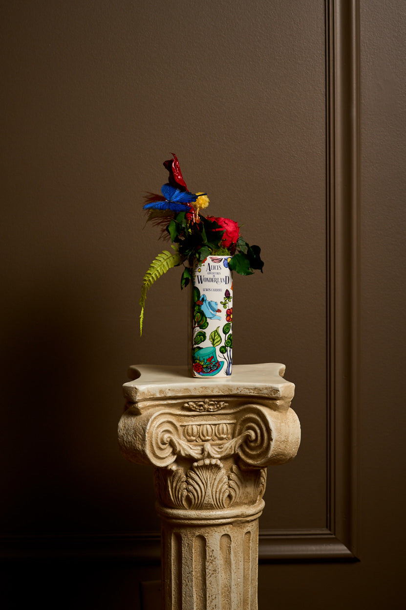 Introducing the Alice in Wonderland Book Vase arrangement from House of Harstad—a whimsical celebration of floral artistry with preserved flowers. Nestled within the open pages, a vibrant red rose, ethereal anthurium, trailing ivy, and playful billy balls create a unique centerpiece. Enhanced with a delicate feather and a whimsical butterfly, this enchanting arrangement invites you to step into a world where nature’s beauty tells a story. Add a touch of imaginative elegance to your space with this enchanting piece—perfect for those who cherish nature and literary charm.