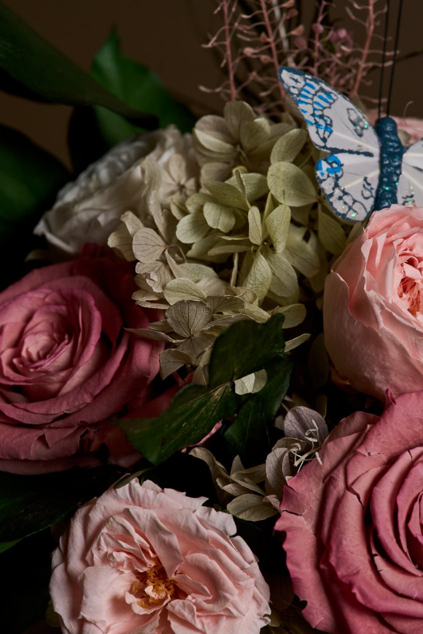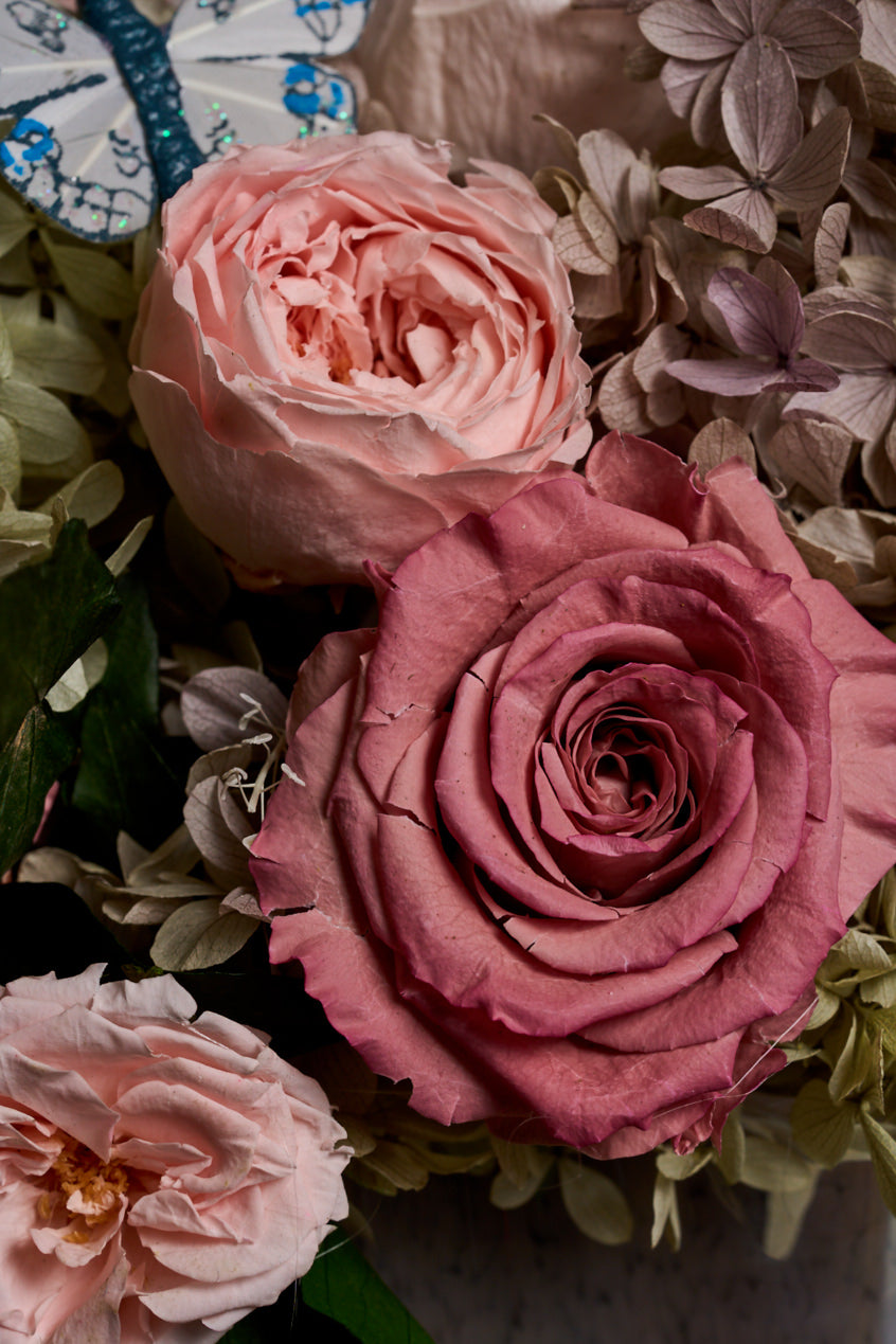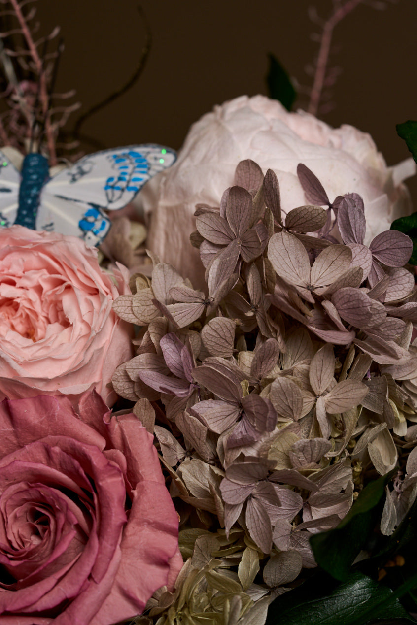 No Returns Accepted: Due to the delicate, handcrafted nature of our preserved floral arrangements, we cannot accept returns or exchanges. Each piece is carefully composed with preserved flowers and natural elements that are fragile and may not survive the shipping process if returned.