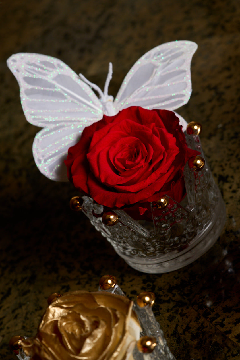 Introducing Gold Crowns — a limited-edition preserved floral arrangement composed of six regal stems in rich reds and gleaming golds. Each bloom feels like a character out of a fable: bold, warm, and quietly powerful. Together, they create a moment of whimsy-meets-wisdom—elegant, enchanting, and just a little unpredictable.